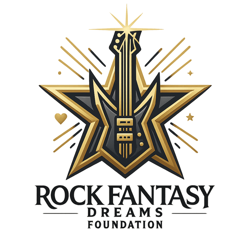 Our Mission is to build a comunity of giving based upon a shared love of Rock N’ Roll. A place where that love turns into action by providing scholarships to musicians in need, enabling them to experience the life changing Rock N’ Roll Fantasy Camp.